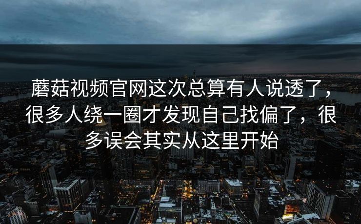 蘑菇视频官网这次总算有人说透了,很多人绕一圈才发现自己找偏了,很多误会其实从这里开始